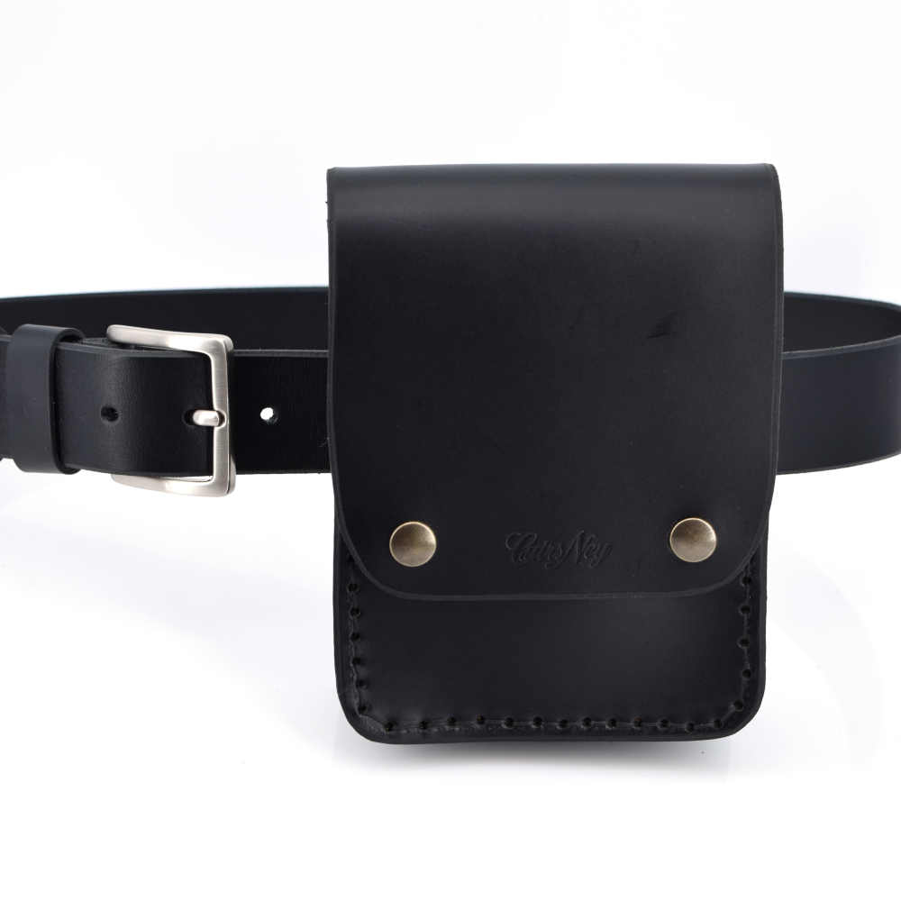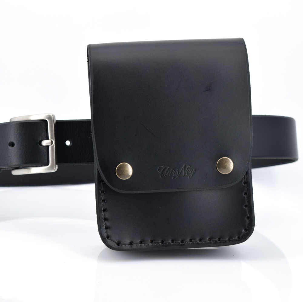 Pochette noire en cuir à mettre à la ceinture « Grand Albin »