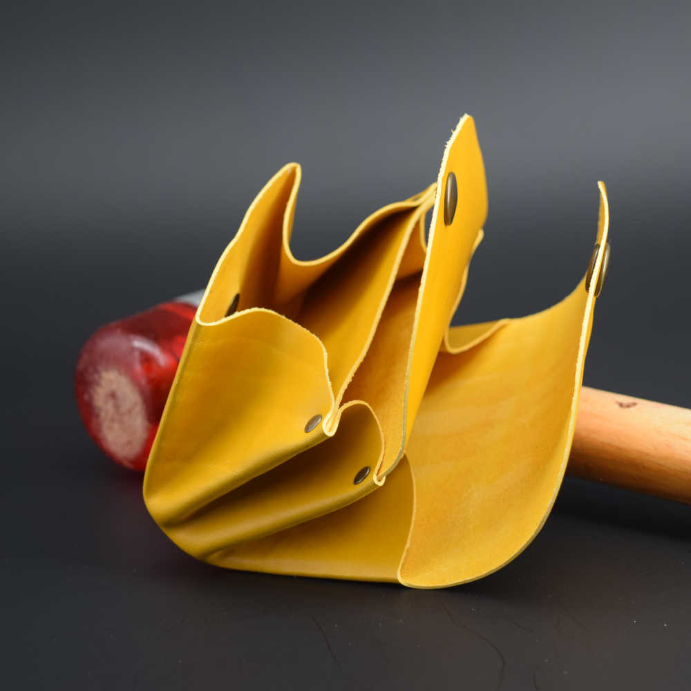 3 poches pour mettre tout votre nécessaire : monnaie, billets, cartes bancaire ou carte vitale, … Le porte-monnaie « Grand-Mère » est très pratique. Sa couleur jaune est teinté dans la masse à la tannerie.